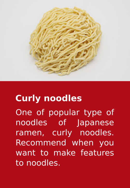 We can produce various kind of noodles as per your request. We show noodle examples we can make as follows.