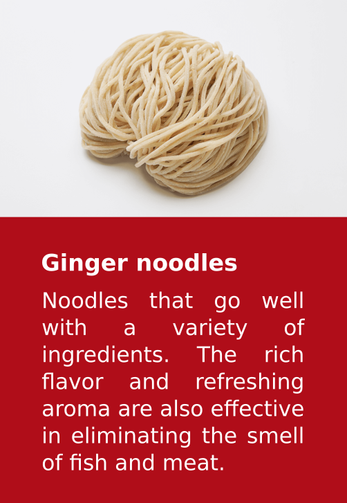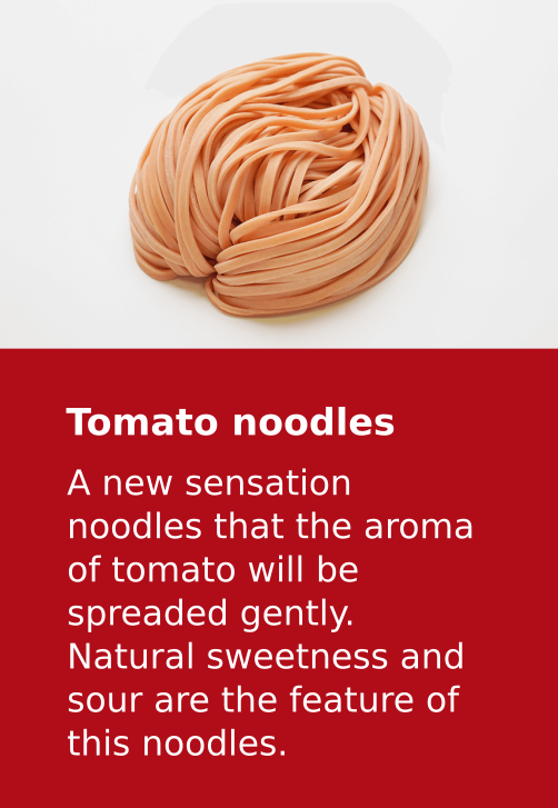 The noodle manufacturing machine that made in Japan and experiences regarding noodle manufacturing allow us to make high quality noodles.